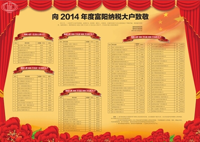 4月27日富陽(yáng)日報Z03版刊登了《向2014年度富陽(yáng)納稅大戶(hù)致敬》光榮榜,杭州環(huán)宇集團有限公司榮登2014年富陽(yáng)年度納稅大戶(hù)光榮榜。